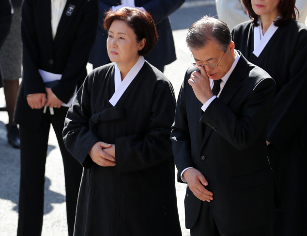문 대통령은 이날 모친을 장지로 보내는 길에 끝내 눈물을 보였다. 부인 김정숙 여사도 시어머니와 이별에 눈물을 흘렸다. 문 대통령은 장지로 출발하기 전 잠시 차량 뒷편에 서서 침통한 표정으로 고인의 뒷모습을 지켜보며 몇차례나 손수건을 꺼내 눈물을 닦기도 했다.