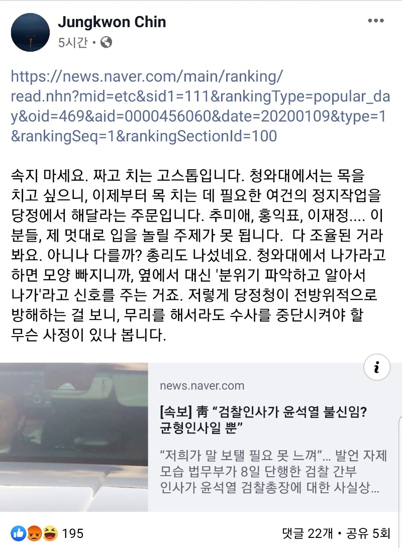 | 깨끗한 정권이 인사를 하니 검찰이 딜을 못하는군요. (0) | 2020.01.09 |