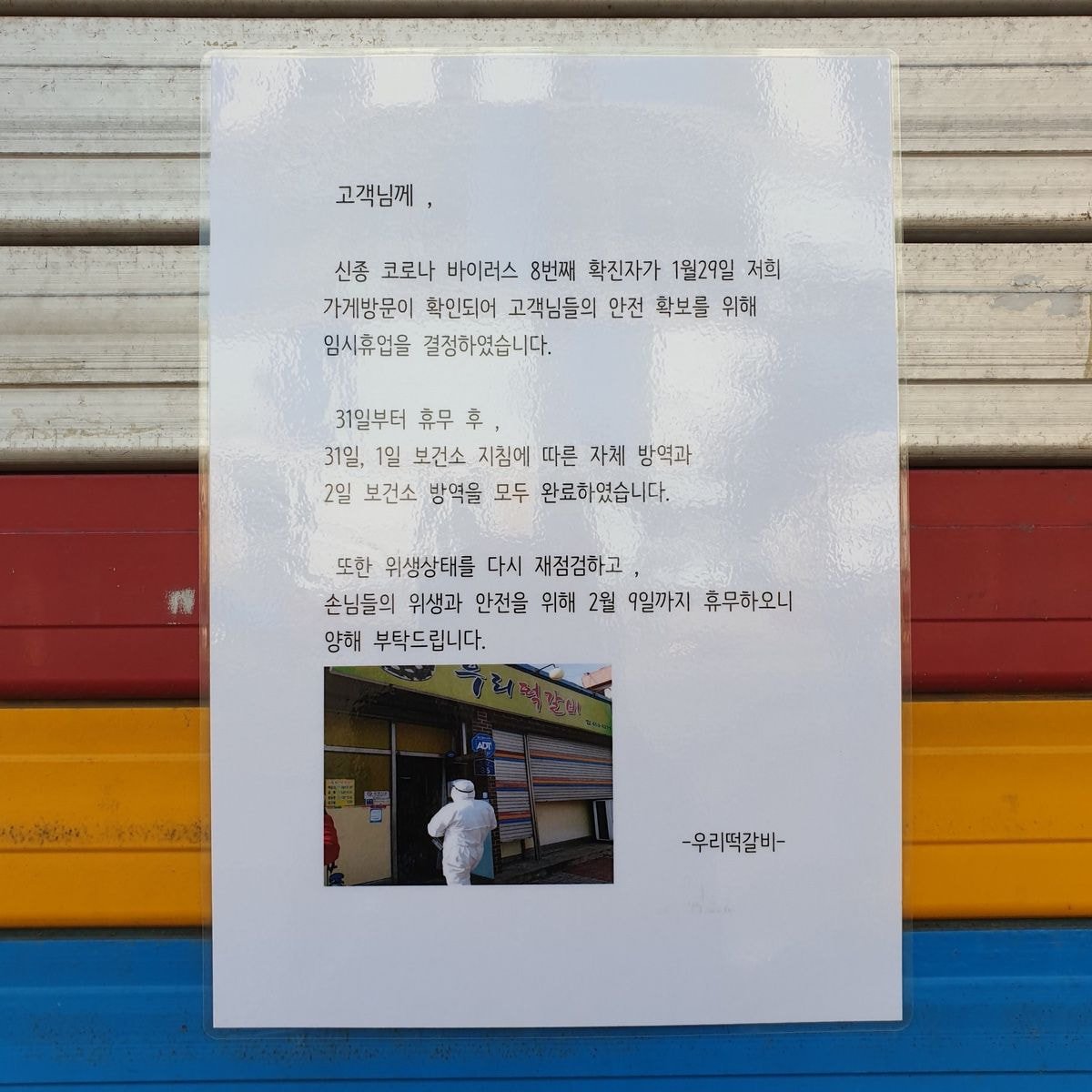 이에 대해서 보건당국은 8번째 코로나 바이러스 확진자가 다녀간 군산의 대중목욕탕 아센사우나의 경우 메르스 대비에 준하는 소독을 진행했다는 점을 밝혔다. 또한, 해당 목욕탕은 1일 오후 5시부터 2일 오전 4시까지 폐쇄후 소독작업을 행했고, 이후에는 정상영업을 허가했다고 한다. 아센사우나 역시도 손님들 및 언론들의 질문에 소독을 진행했고, 보건당국에서 영업을 해도 괜찮다는 답변을 받았기 때문에 정상영업을 했다고 한다.