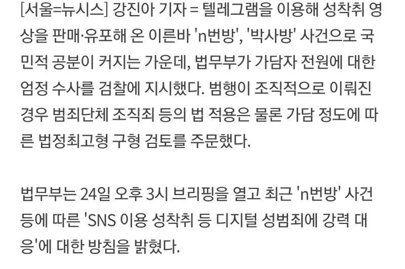 | 법무부 “n번방 전원 엄정 수사…‘범죄단체 조직죄’ 적용 검토” (0) | 2020.03.24 |