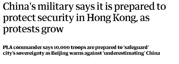 그래서 중국군이 홍콩의 주권을 '보호' 하기 위해