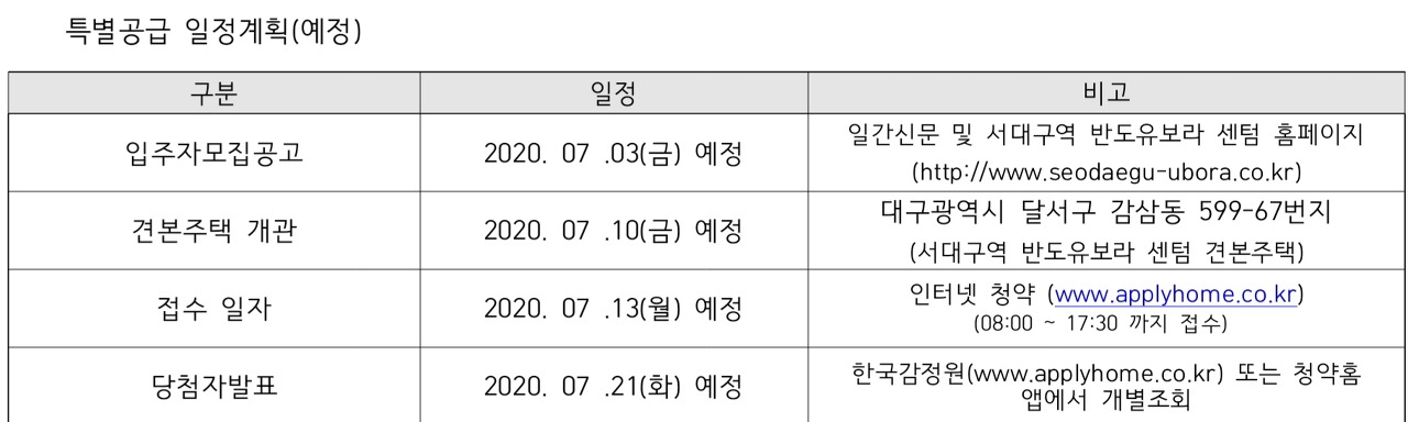 3) 특별공급접수일 : 7월 13일