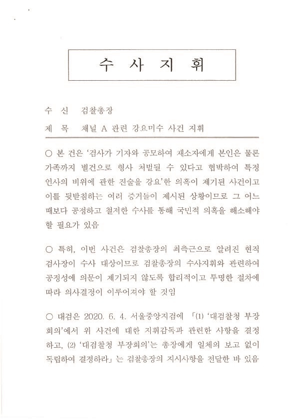 추미애 법무부장관 수사지휘서 전문 공개 본문