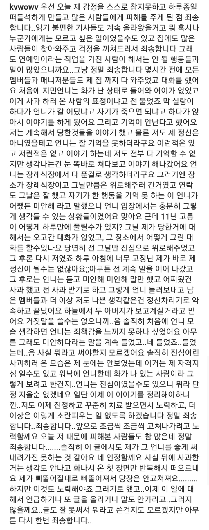 AOA 지민 사과문을 본 권민아 반응 본문