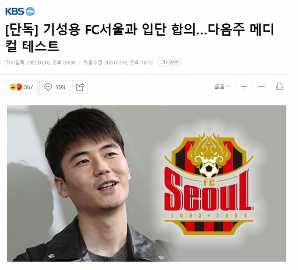 무려 KBS에서 기성용과 FC서울의 협상 마무리 소식을 전했다.