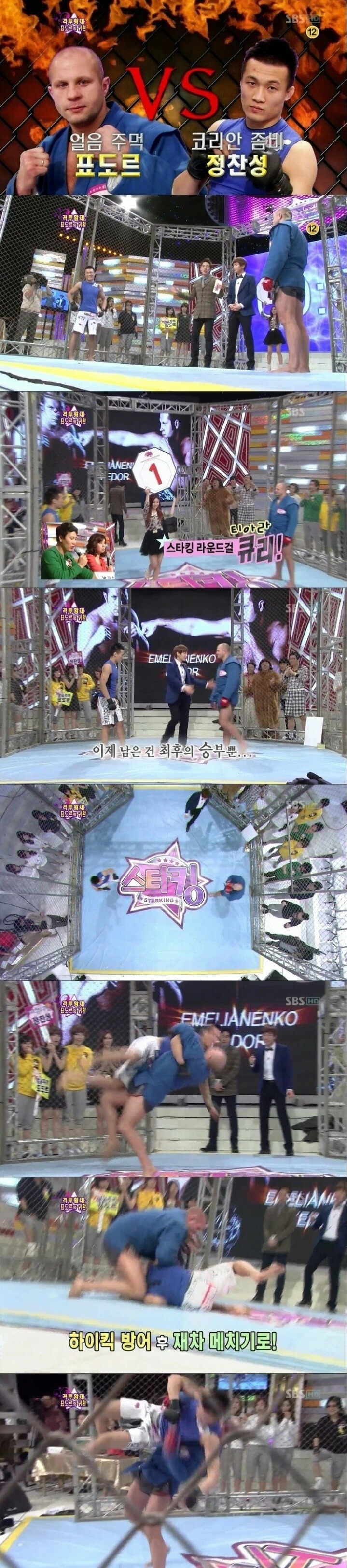 "아... 나 효도르 좋아했다. 그런데 정말 실망했다. 나와 효도르랑 40킬로그램 차이다. 대본에 '자유 스파링' 이라고만