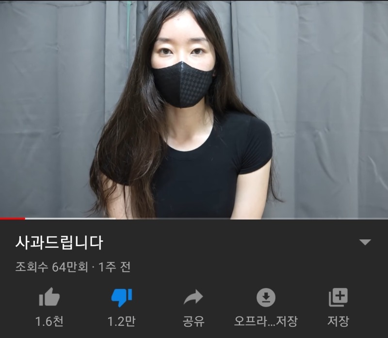 결국 과거 글 때문에 정체 들키고 사과영상 찍음