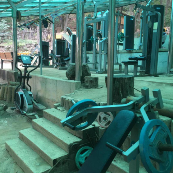 공개된 사진 속 ‘산스장’은 등산로에 있는 운동 기구 시설을 의미한다.