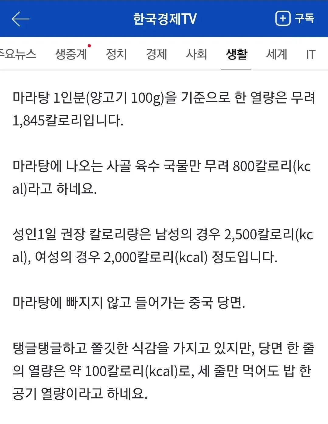 마라탕 1인분 칼로리 1845Kcal 본문