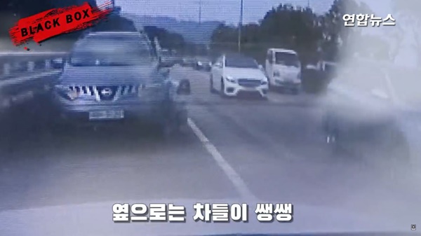 지난달 15일 서울 올림픽대로를 지나던 A씨 차량의 후방 블랙박스 영상을 보면 한 여성 운전자가 차량 옆에 주저앉아 있다.