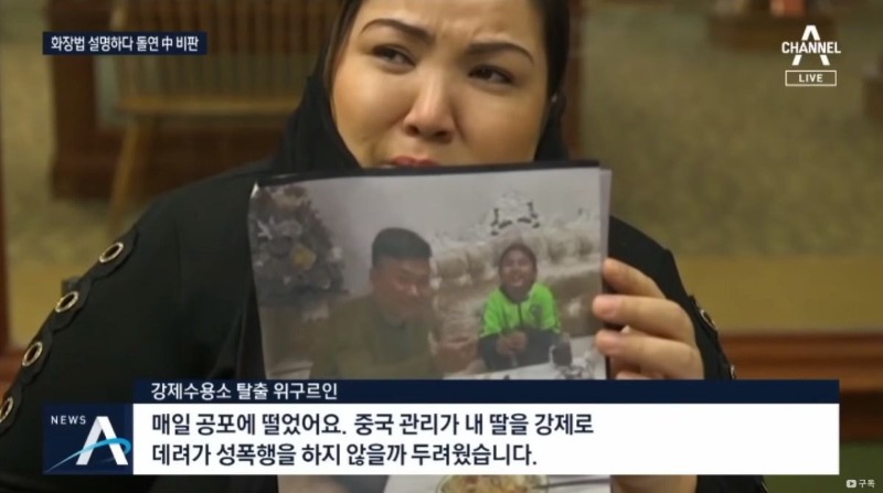 화장법으로 위장한 위구르 소녀의 중국 비판