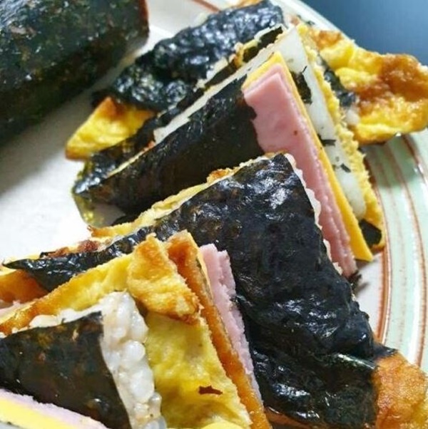 게시물에 따르면, 접는 김밥은 김을 4면으로 나눈 후 각각 면에 밥, 계란, 햄, 단무지 등을 취향에 맞게 올린다.