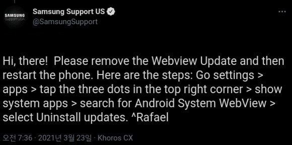 웹뷰가 업데이트 된 경우. 웹뷰를 사용하는 모든 앱이 실행되지 않습니다 - -;;